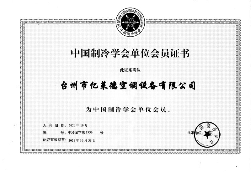 中國(guó)制冷學(xué)會(huì)單位會(huì)員證書